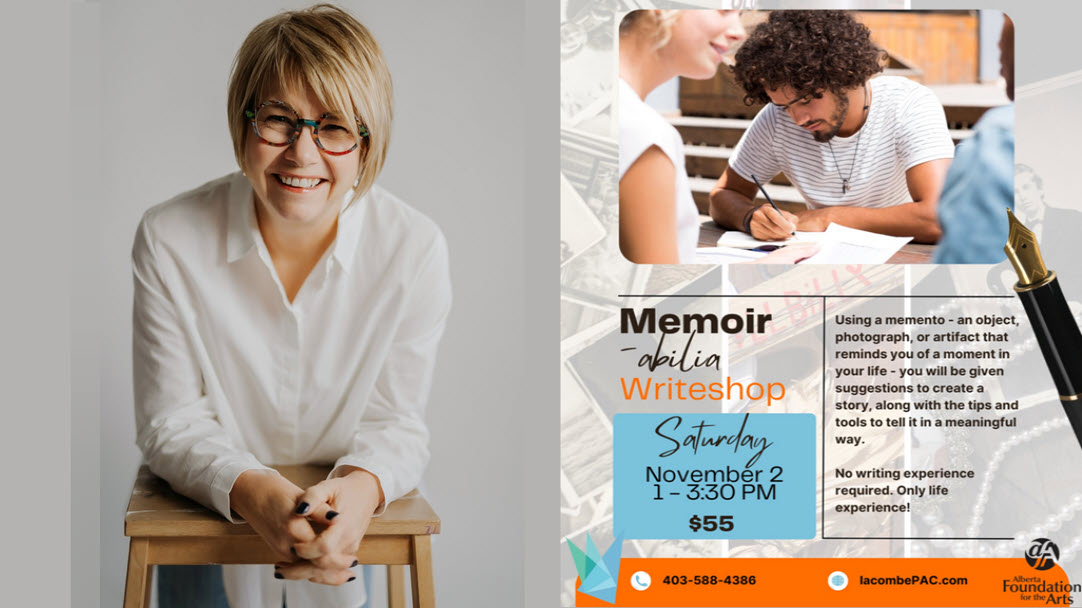 I was wonderful to be invited again to offer a writeshop at the Lacombe Performing Arts Centre. This time it was Memoir-ability - writing a story using a memento – an object, photograph, or artifact - that reminds you of a moment in your life. I provided guidance and suggestions to create a story, along with the tips and tools to tell it in a meaningful way.