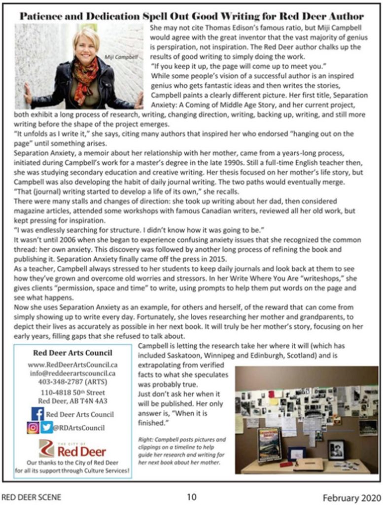 On a cold afternoon in January, I met Carl Hahn at Red Deer’s Meeting Waters Cafe. We settled in front of the fireplace for a warm conversation about writing, life and the writer’s life.  Among other things, Carl writes features about local artists for Red Deer Scene magazine. Thanks to Carl and Red Deer Arts Council for this great article in February’s Red Deer Scene. Check it out! Lots going on in the arts in our community!